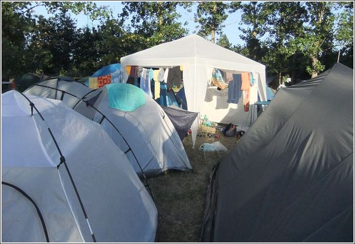 Bild: Der Sport Jongleure Pavillon, umrundet von unseren einzelnen Zelten